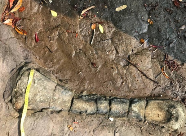 Xương hóa thạch khủng long. Ảnh: Bộ Môi trường CampuchiaMẫu hóa thạch này được phát hiện ở khu bảo tồn động vật hoang dã Ta Tay, tỉnh Koh Kong phía Tây Nam Campuchia. Hóa thạch này nằm trong đá có độ dài khoảng 70cm và rộng 20cm. Về địa chất, hóa thạch này nằm ở trong đá và nếu so với các đảo và núi xung quanh thì thấp hơn khoảng 30 – 40m.