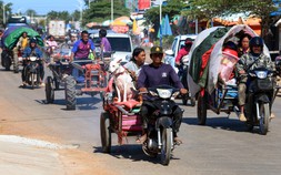 Người dân sơ tán ở tỉnh Siem Reap của Campuchia gần đây Ảnh: AFP
