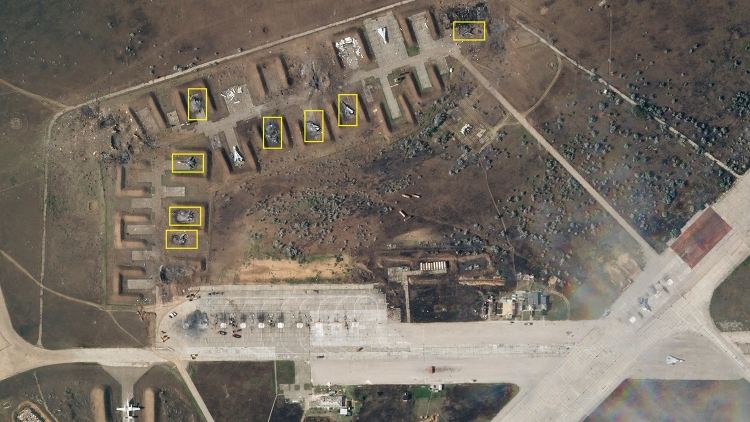 Trước đó, giới chức Nga cho hay, các vụ nổ gần đây ở căn cứ không quân Nga trên bán đảo Crimea chỉ ở mức độ nhỏ. Tuy nhiên, các hình ảnh vệ tinh mới được hé lộ cho thấy, có khoảng 3-4 hố bom lớn và ít nhất 8 máy bay chiến đấu đã bị phá hủy. Trong khi đó, giới chức địa phương đã liệt kê hàng chục tòa nhà bị hư hai và tuyên bố tình trạng khẩn cấp.