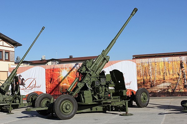 Pháo cao xạ KS-19. Ảnh: weaponsystems.netKS-19 là pháo phòng không do Liên Xô phát triển từ năm 1947. Pháo KS-19 dài 9,45m, cao 2,2m, trọng lượng 9,5 tấn. Hệ thống pháo được đặt trên xe kéo 4 bánh, khi di chuyển xa phải dùng xe vận tải bánh lốp hoặc xe bánh xích. Kíp điều khiển gồm 7 người.