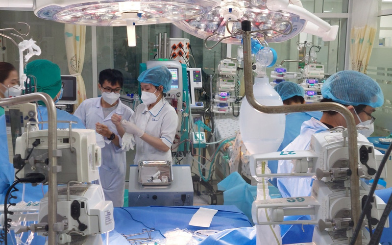 Tại bệnh viện, qua thăm khám, các bác sĩ xác định bệnh nhi bị tràn dịch màng tim. Mặc dù được dẫn lưu dịch ra ngoài nhưng tình trạng bệnh nhi vẫn không cải thiện, diễn tiến nặng, sốc tim, viêm cơ tim cấp. Các bác sĩ quyết định can thiệp ECMO cho bệnh nhi khẩn trong đêm.