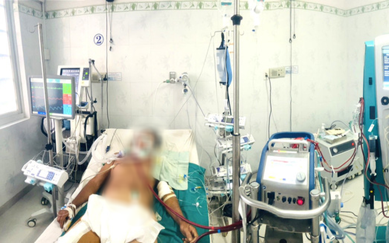 Tại Khu điều trị Hồi sức tích cực 2 chuyên thu dung và điều trị các bệnh nhân nhiễm COVID-19 nặng và nguy kịch, bệnh nhân được tiếp nhận và xử trí theo phác đồ của Bộ Y tế, dùng kháng sinh, kháng virus và lọc máu hấp phụ. Song, tình trạng bệnh nhân ngày càng xấu, phổi tổn thương nặng cả 2 bên phế trường, oxy máu rất thấp, không đáp ứng với tất cả liệu pháp oxy.
