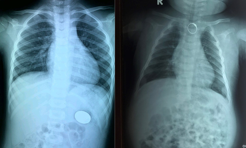 Trường hợp thứ nhất là bệnh nhi 2 tháng tuổi, nhập viện do nuốt dị vật.