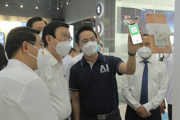 Nguyên Chủ tịch nước Trương Tấn Sang tham quan nhiều mô hình nghiên cứu khoa học của sinh viên ở ĐHQG TP.HCM