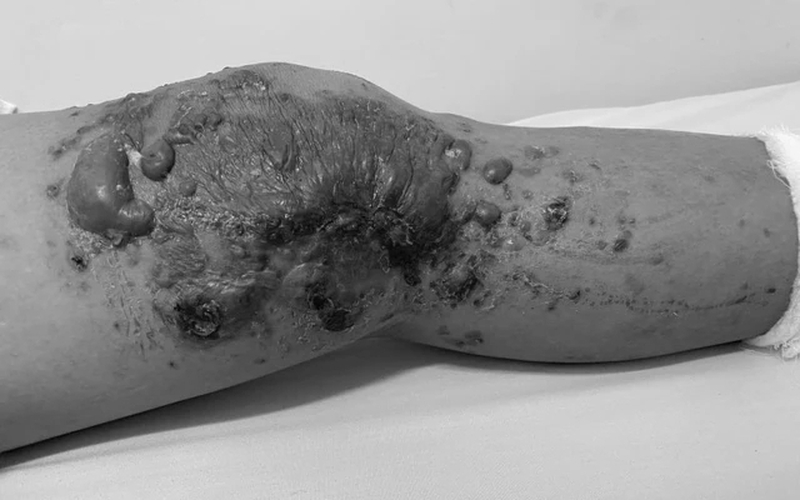 Bệnh viện 199 (Bộ Công an) vừa tiếp nhận một bệnh nhân nam trong tình trạng sưng đau, chảy dịch kèm theo nhiều nốt phỏng toàn bộ vùng đùi bên phải.
