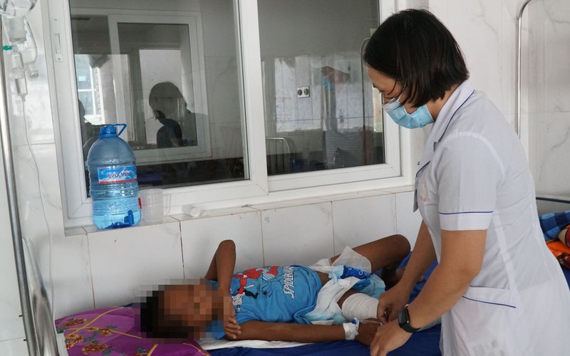 Tương tự là trường hợp bệnh nhi V.N.Đ. (4 tuổi, xã Hòa Thành, huyện Krông Bông, tỉnh Đắk Lắk) cũng bị bỏng khi mẹ đang nấu ăn.