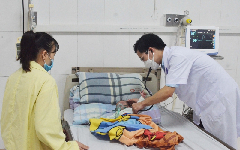 Khoa Nhi, Bệnh viện Bãi Cháy (Quảng Ninh) vừa tiếp nhận bệnh nhi 1 tháng tuổi bị viêm phế quản, biến chứng suy hô hấp do mắc virus hợp bào hô hấp (RSV).