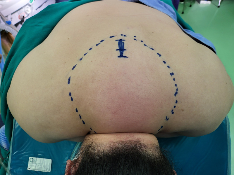 Các bác sĩ chẩn đoán bệnh nhân bị căn bệnh u mỡ không rõ nguyên nhân và chỉ định mổ bằng một đường rạch ngang chạy dài qua toàn bộ vùng cổ sau. Lo lắng về kích thước và nguy cơ của đường mổ lớn, bệnh nhân đã tìm đến Trung tâm Phẫu thuật Tạo hình Thẩm mỹ, Bệnh viện Hữu nghị Việt Đức.