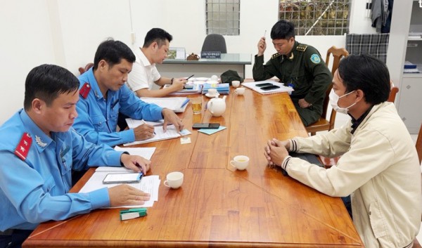 Tài xế Trịnh Anh Võ (bên phải) làm việc với cơ quan chức năng, sau đó bị buộc trả lại tiền “chặt chém”