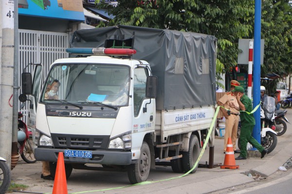 Trưa 19/10, Đội CSGT Bình Triệu, Phòng CSGT Công an TPHCM lập chốt kiểm tra nồng độ cồn với người điều khiển phương tiện trên tuyến đường ĐT743 đoạn gần ngã 6 An Phú, phường An Phú.
