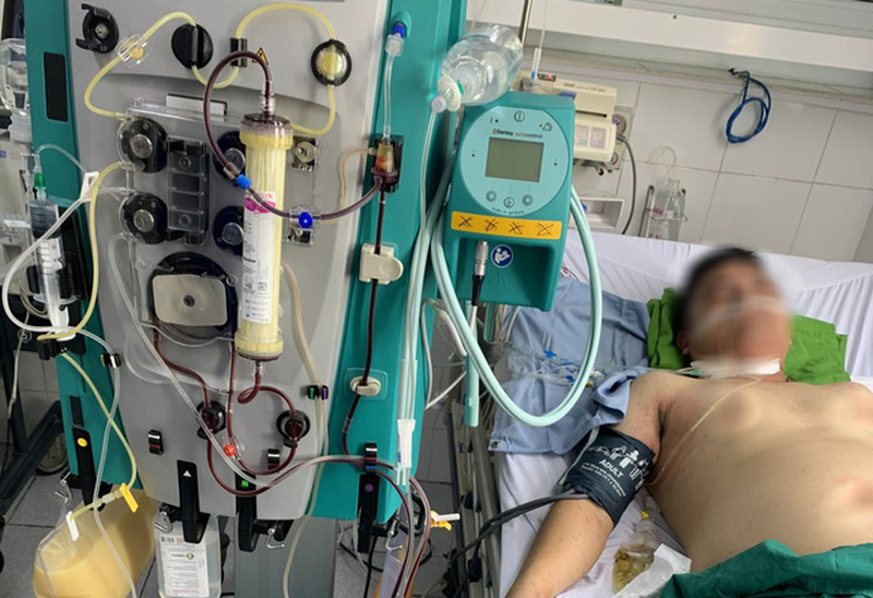 Ngay lập tức, bệnh nhân được điều trị nội khoa tích cực. Các bác sĩ trong tiến hành đặt catherter bù dịch, dùng kháng sinh. Sau khi điều trị nội khoa tình trạng bệnh nhân cải thiện chậm, bụng còn chướng căng, các bác sĩ đã tiến hành thay huyết tương.