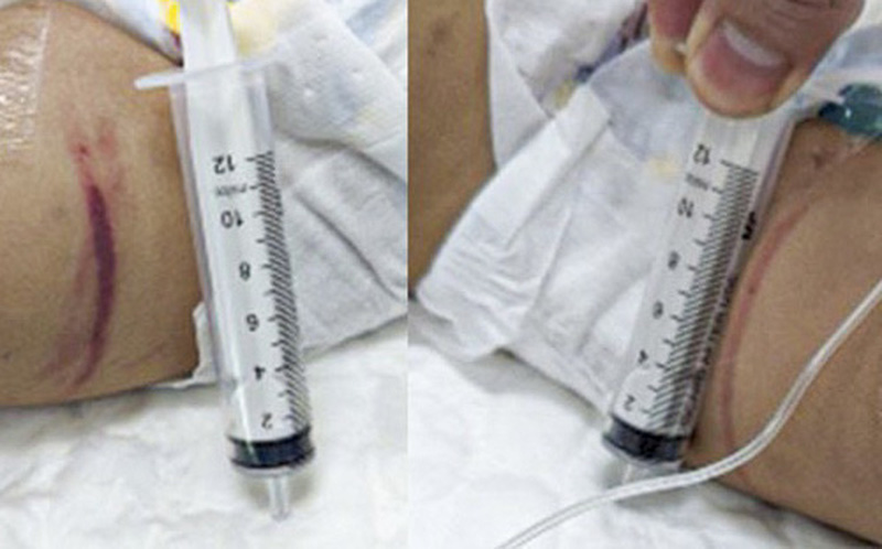 Qua thăm khám, các bác sĩ thấy bệnh nhi có biểu hiện hôn mê, suy hô hấp nặng phải hỗ trợ thở máy, suy tuần hoàn, rối loạn tiêu hóa. Trên da có vết thương ở nhiều vị trí: vết lằn kích thước 4 – 5cm ở cổ chân 2 bên; vết lằn kích thước 10 – 12cm ở mặt ngoài đùi phải; vết lằn tím tụ máu kích thước 10cm ở mặt ngoài đùi trái; vết bầm tụ máu kích thước 3x4cm ở trán.