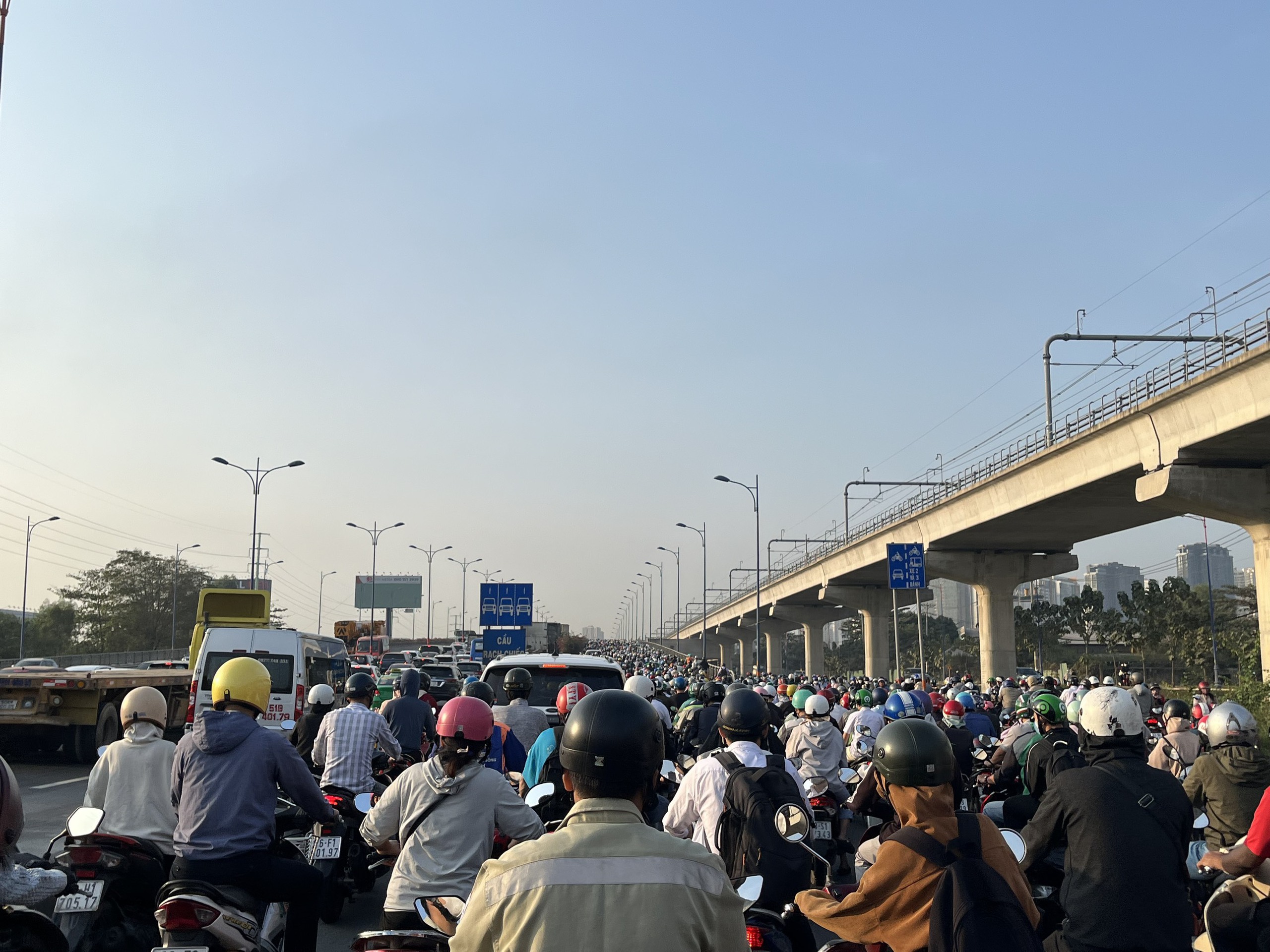 Sáng nay (22.1) đường Võ Nguyên Giáp (trước đây là Xa lộ Hà Nội) đoạn qua cầu Rạch Chiếc (TP.Thủ Đức) xảy ra ùn ứ kéo dài hàng giờ đồng hồ.
