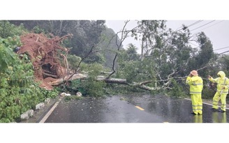 Cây cổ thụ bật gốc chắn ngang đèo Mimosa