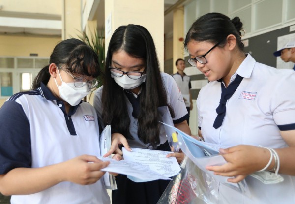 Thí sinh trao đổi sau giờ thi môn văn kỳ thi tốt nghiệp THPT 2023