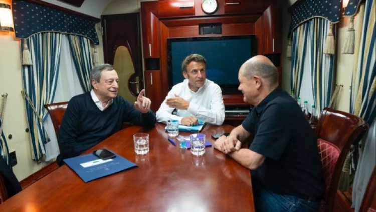 Tổng thống Macron cùng Thủ tướng Đức Olaf Scholz và Thủ tướng Italy Mario Draghi đã đến Ukraine vào ngày 16/6, để gặpTổng thống Ukraine Volodymyr Zelensky. Đây là chuyến thăm Ukraine đầu tiên của 3 nhà lãnh đạo hàng đầu châu Âu kể từ khi xảy ra cuộc xung đột Nga-Ukraine cuối tháng 2 vừa qua.