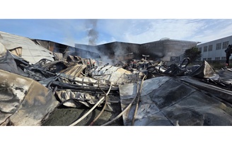 Toàn bộ khu nhà xưởng bị thiêu rụi, đổ sập