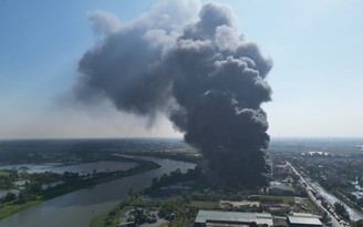 Cháy lớn tại xưởng sản xuất dép nhựa tại Hải Phòng tạo ra cột khói đen bốc cao ngút trời