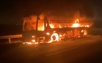 Cháy xe giường nằm bị cháy trơ khung trên Cao tốc TP.HCM – Trung Lương