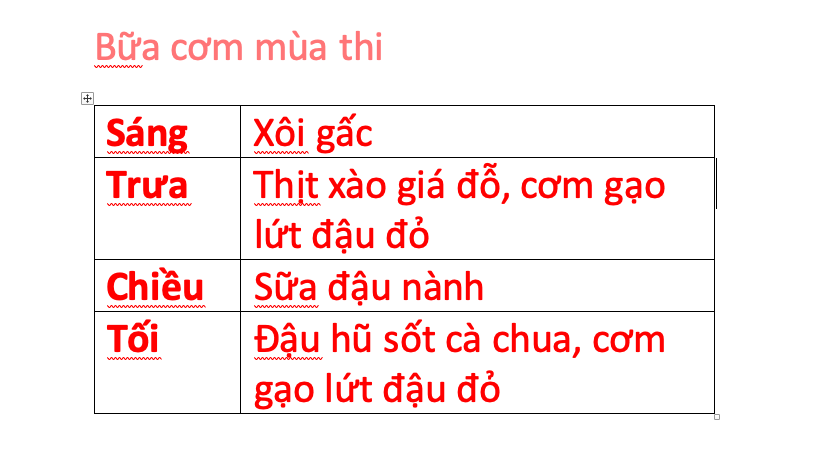 Một thực đơn những ngày thi vào lớp 10 được chia sẻ trên một Fanpage đông đảo học sinh TP.HCM |