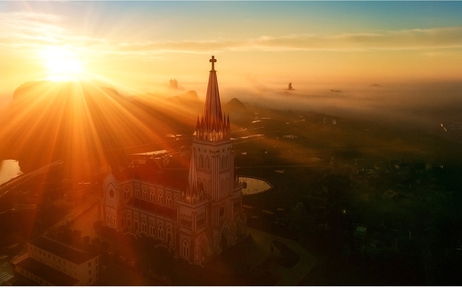 Chiêm ngưỡng nhà thờ Lãng Vân bên đầm ngập nước Vân Long