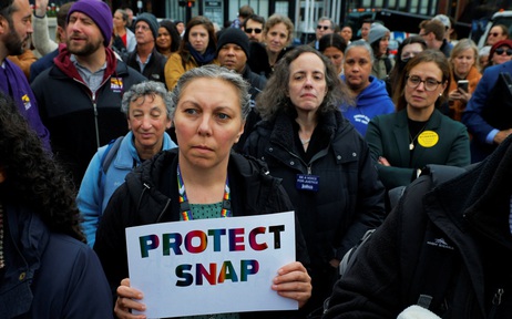Biểu tình yêu cầu bảo vệ chương trình tem phiếu thực phẩm SNAP ở Boston (Massachusetts, Mỹ) ngày 28.10 Ảnh: Reuters