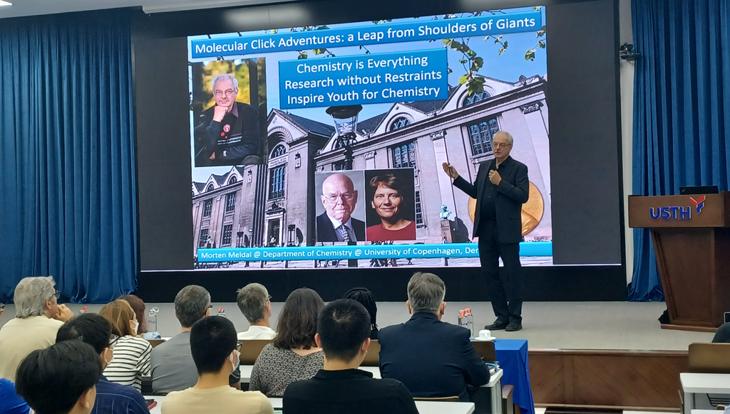 GS Morten Peter Meldal thực hiện bài giảng đại chúng tại Trường ĐH Khoa học và Công nghệ Hà Nội