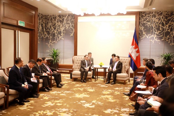 Ông Trần Bá Dương (trái) tiếp kiến Thủ tướng Vương quốc Campuchia
