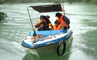 Đoàn công tác của ông Trần Phong sử dụng ca nô vào vùng đồng bào Rục bị cô lập vì lũ