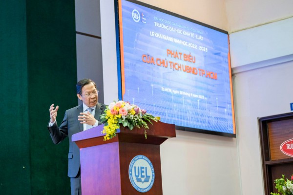 Sáng 30.9, ông Phan Văn Mãi, Ủy viên Ban Chấp hành Trung ương Đảng, Phó Bí thư thường trực Thành ủy, Chủ tịch UBND TP.HCM đã tham dự lễ khai giảng năm học 2022-2023 của Trường ĐH Kinh tế-Luật (ĐH Quốc gia TP.HCM).