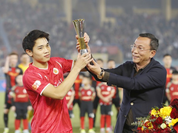 Chủ tịch Liên đoàn Bóng đá Việt Nam (VFF) đã trao ngôi vua phá lưới cho Đình Bắc trước sự chứng kiến của hàng nghìn khán giả trên sân Hàng Đẫy tối nay (1.2), như lời động viên cho chân sút sinh năm 2004 tiếp tục nỗ lực khẳng định mình.