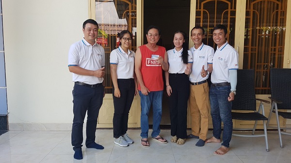 Anh N.V.D (áo đỏ) chia sẻ niềm vui cùng nhân viên SCTV