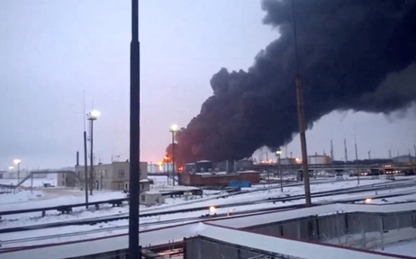 Khói bốc lên nghi ngút sau khi UAV của Ukraine tấn công một nhà máy lọc dầu tại vùng Ryazan (Nga) ngày 13.3.2024 ẢNH: REUTERS