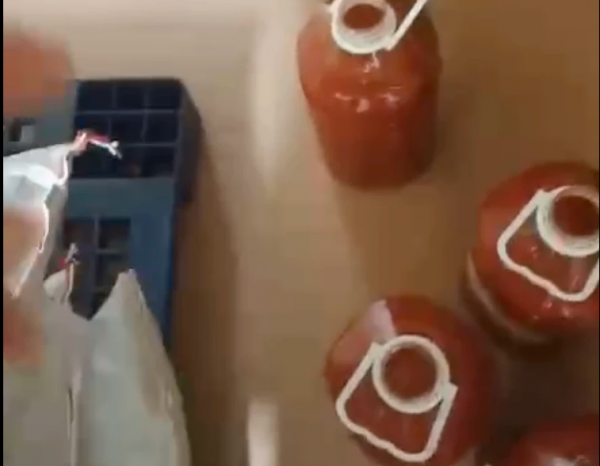 Cũng theo các video clip trên, bên trong bếp ăn này có nhiều loại gia vị, nhiều can tương ớt không rõ xuất xứ nguồn gốc để cùng với nước tương đen, không xác định niên hạn, không biết của hãng nào…
