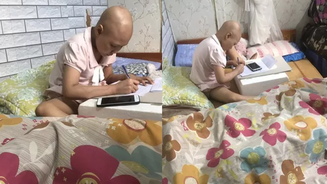 Gần 2 năm điều trị, có những đợt vào hóa chất, Vy mệt chẳng thể chịu nổi, lại rơm rớm nước mắt. Sức khỏe yếu, đi viện cả tuần, Vy chẳng thể theo nổi chương trình học. Chị Ngọc Anh quyết định cho con nghỉ học. Giây phút thông báo chuyện nghỉ học, Vy rất buồn.