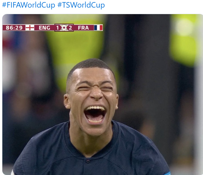 Hình ảnh Mbappe vui sướng trước nổi đau của Kane được chia sẻ tràn ngập mạng xã hội Ảnh chụp Màn Hình |
