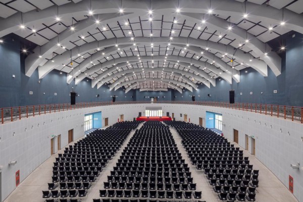 Hội trường lớn của Trường ĐH Việt Đức.Thiết kế của khuôn viên Trường ĐH Việt Đức được nhận giải thưởng quốc tế về thiết kế của Hiệp hội kiến trúc Boston (BSA, Mỹ)