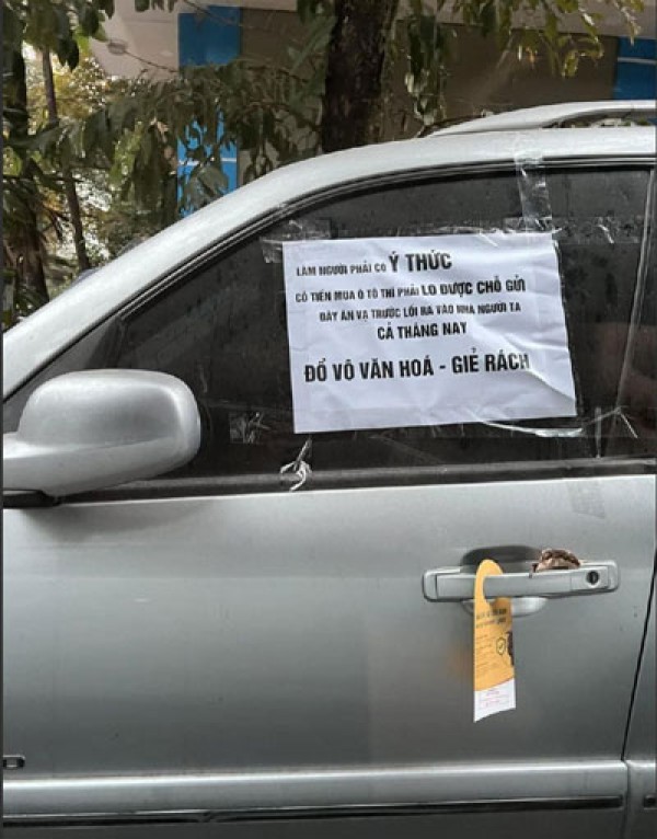“Làm người phải có ý thức, có tiền mua ô tô thì phải lo được chỗ gửi. Đây ăn vạ trước lối ra vào nhà người ta cả tháng nay. Đồ vô văn hóa- giẻ rách”. Đây là lời “nhắn nhủ” của một chủ nhà, viết trên giấy trắng, dán lên cửa kính chiếc ô tô đỗ chắn cửa, vừa gây xôn xao cộng đồng mạng.
