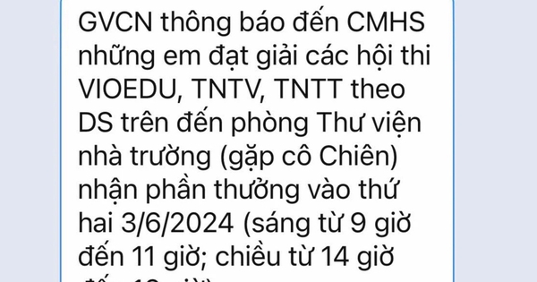 Trường thông báo đến cha mẹ học sinh đạt giải, đến thư viện vào ngày hôm nay, 3.6 để nhận phần thưởng