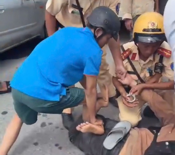 Các chiến sĩ CSGT TP.HCM cùng người dân khống chế kẻ trộm ô tô