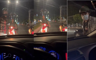 Nhóm người đi xe máy chặn xe ô tô giữa đường