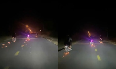 Ngày 17/12, Công an xã Minh Thạnh, TPHCM đang củng cố hồ sơ xử lý các đối tượng liên quan đến vụ chạy xe máy tốc độ cao, la hét, nằm trên yên xe, quệt chân chống xe xuống đường tạo thành tia lửa xảy ra trên địa bàn.