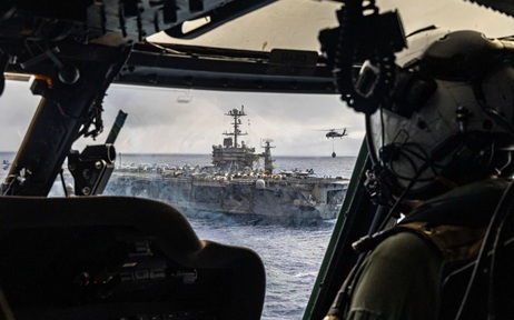 Tàu sân bay USS Harry S. Truman từ góc nhìn của trực thăng MH-60 quân đội Mỹ hồi tháng 5 ẢNH: HẢI QUÂN MỸ