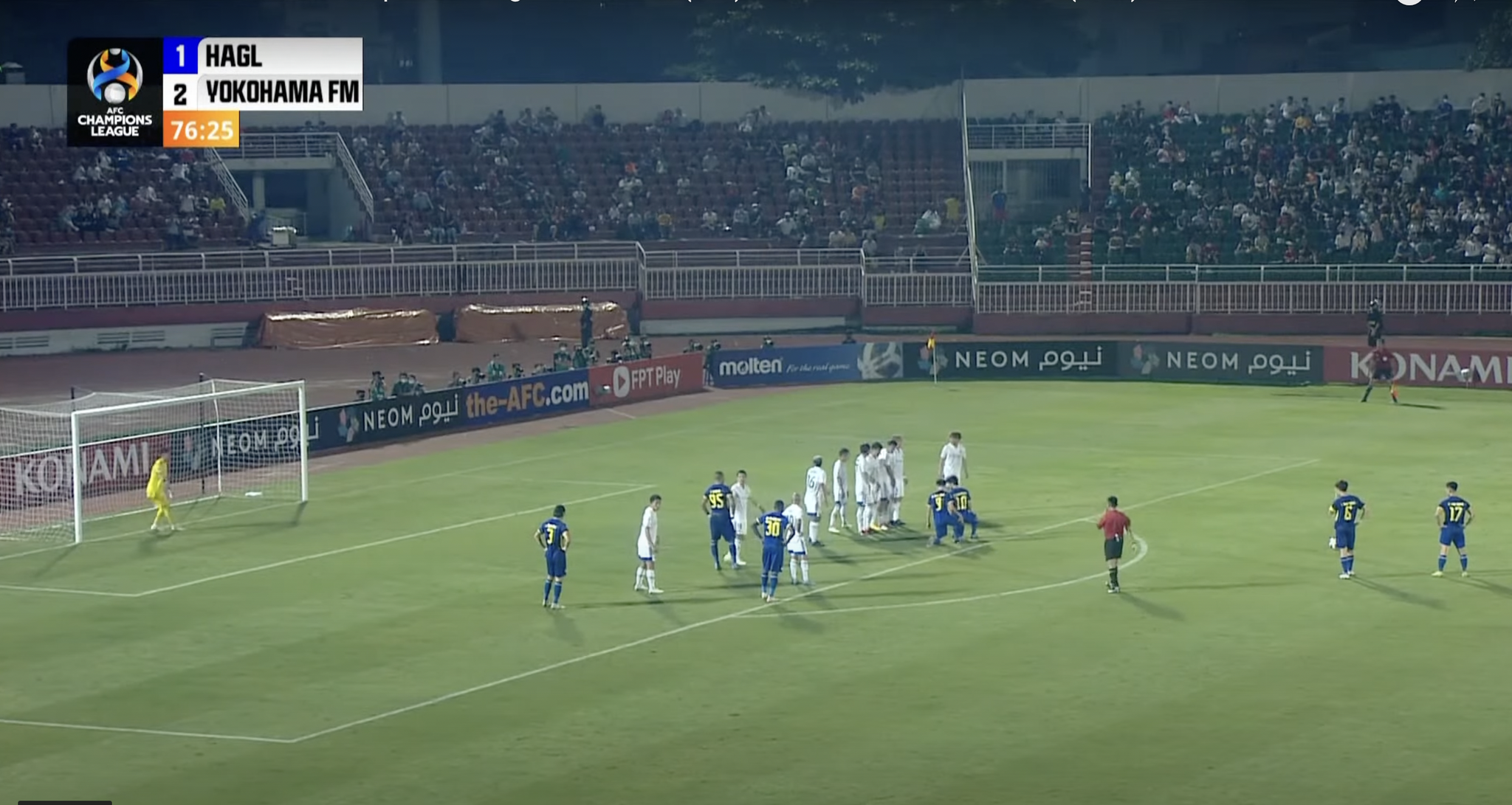 Cụ thể, ở phút thứ 77, khi Xuân Trường đứng trên chấm đá phạt với góc sút và cự ly thuận lợi, Công Phượng và Văn Toàn đã khiến cho nhiều người phải đặt dấu hỏi khi quỳ gối trước hàng rào của đội khách. Vào lúc này, HAGL đang bị Yokohama dẫn 1-2 và đang rất chắt chiu cơ hội để tìm kiếm bàn thắng quân bình tỷ số.