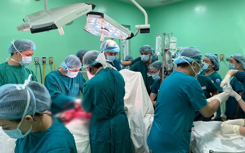 Tiến hành song song vừa tiếp tục hồi sức nhấn tim, các bác sĩ sản khoa vừa nhanh chóng phẫu thuật mở bụng cấp cứu. Ghi nhận ổ bụng có khoảng 3.000ml máu loãng và máu cục.