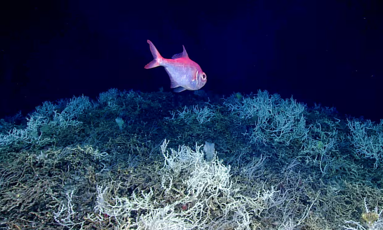 Một con cá alfonsino bơi phía trên ụ san hô nước lạnh ở ngoài khơi bờ biển phía đông nam Mỹ