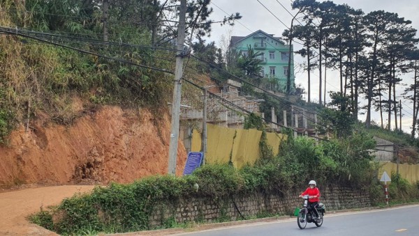 Công trình kè taluy trên là một trong những hạng mục thuộc dự án công trình khách sạn Diamond Hill. Trước đó, Thanh Niên phản ánh công trình này bị cơ quan chức năng thu hồi giấy phép xây dựng do thi công không đúng thiết kế, dẫn đến sạt lở taluy, uy hiếp an toàn đến các công trình nhà trên cao.