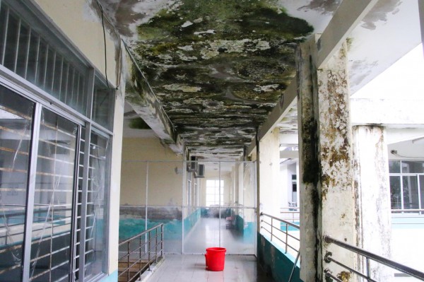 Những bức tường loang lổ ở khu điều trị nội trú |
