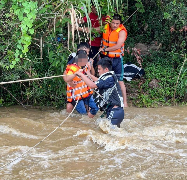 Công an H.Hòa Vang vượt lũ giải cứu nhóm du khách bị cô lập khi cắm trại ven suối xã Hòa Phú mùa hè năm 2022