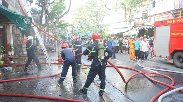 Đội Cảnh sát PCCC và cứu nạn cứu hộ Công an Q.Hải Châu đã đưa nhiều phương tiện tiếp cận hiện trường, sử dụng xe thang để tăng thêm hướng chữa cháy.